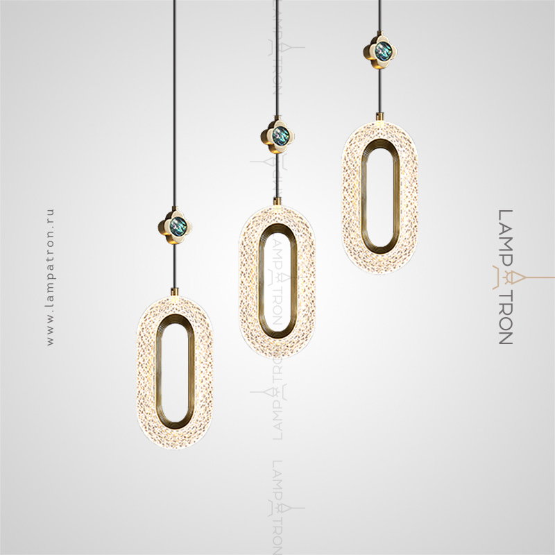 Suspended lamp with a relief ceiling of a ring -shaped shape and a decorative flower with a pearl core