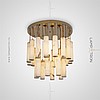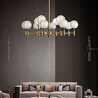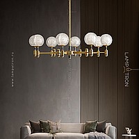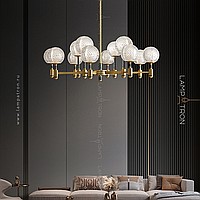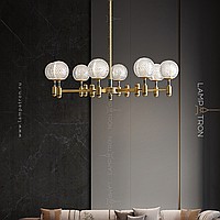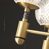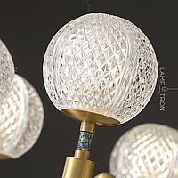 A series of chandeliers on a radial frame with embossed spherical ceiling glasses on glasses with mother -of -pearl trim