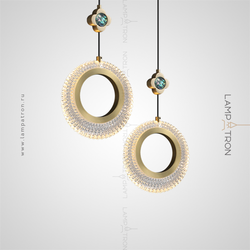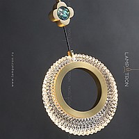 Suspended lamp with a relief ceiling of a ring -shaped shape and a decorative flower with a pearl core