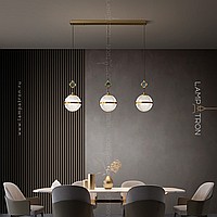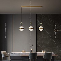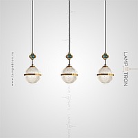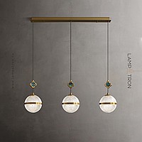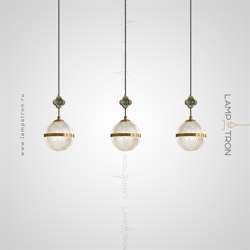 The finished combination of suspended lamps with spherical spells and decorative colors with pearl core