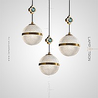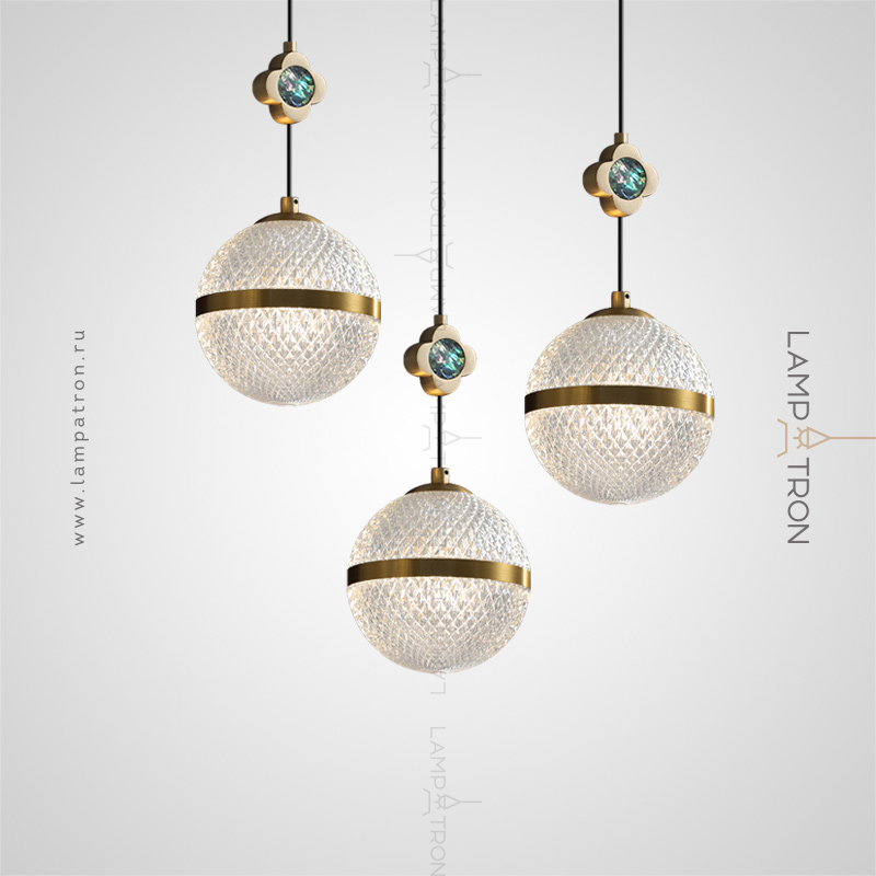 Suspended lamp with a embossed spherical ceiling and a decorative flower with mother -of -pearl core
