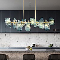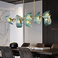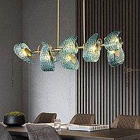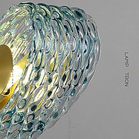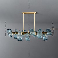 A series of rack lamps with blue glass scattering in the form of petals with a shell surface