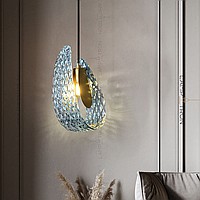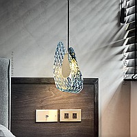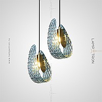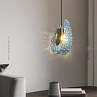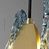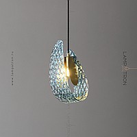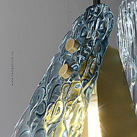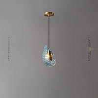 Designer suspended lamp with a glass relief scatter in the shape of a petal with a shell surface