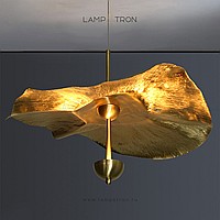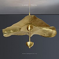Suspended lamp with a relief lampshade made of metal and LED light source on a vertical rack