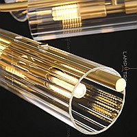 A series of rack lamps with elongated multifaceted cylindrical patches