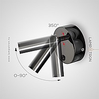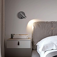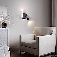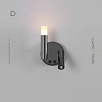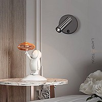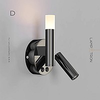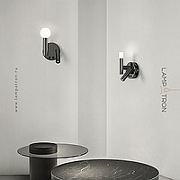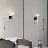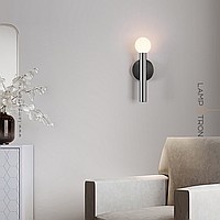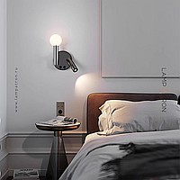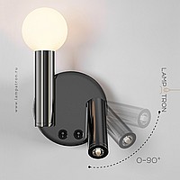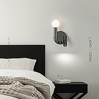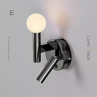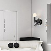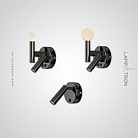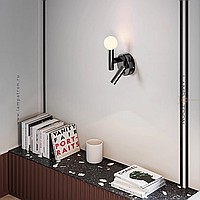 A series of minimalist LED wall lamps with a spherical and cylindrical shade and a switch on the body