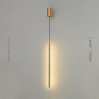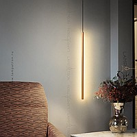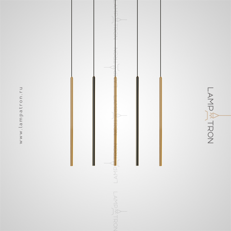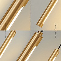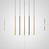 A series of pendant lamps with a rectangular LED panel on an elongated cylindrical body