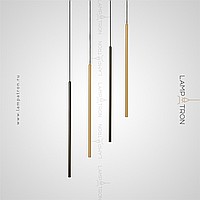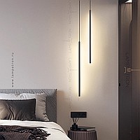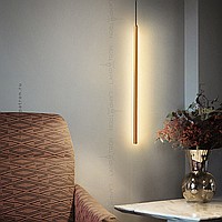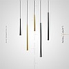 A series of pendant lamps with a rectangular LED panel on an elongated cylindrical body