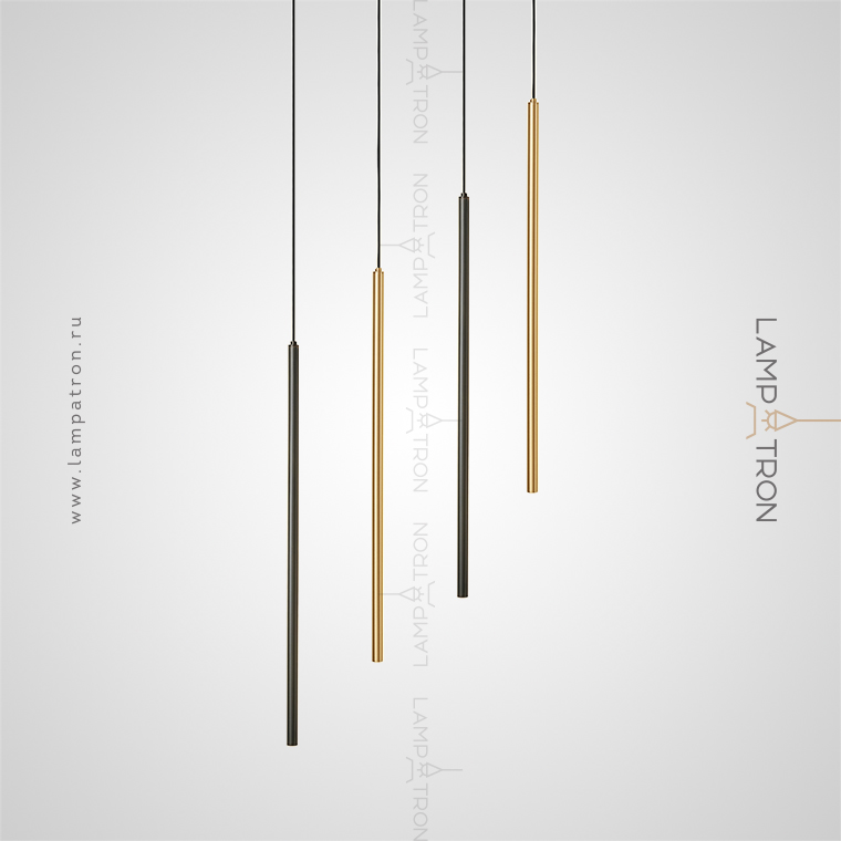 A series of pendant lamps with a rectangular LED panel on an elongated cylindrical body