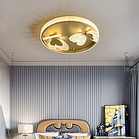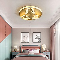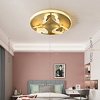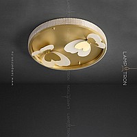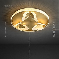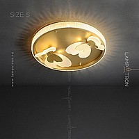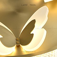A series of ceiling lamps with decorative luminous butterflies on a disk-shaped base with LED lighting along the contour