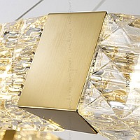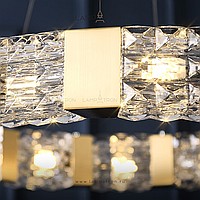 A series of ring chandeliers with embossed glasses on a rectangular metal frame
