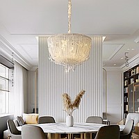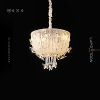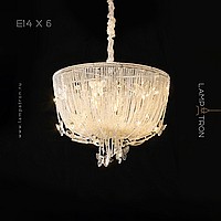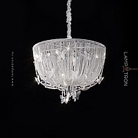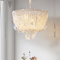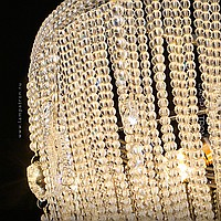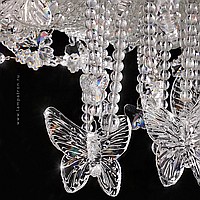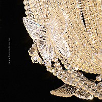 A series of chandeliers with a dome lampshade made of crystal pendants in the form of beads and butterflies