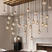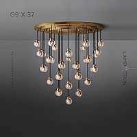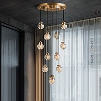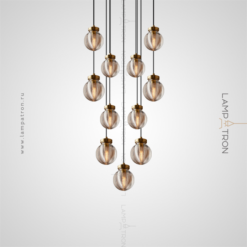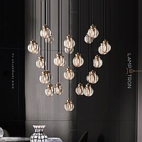 Ready -made combination of suspended lamps with spherical ceilings made of corrugated crystal