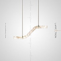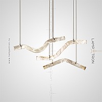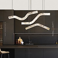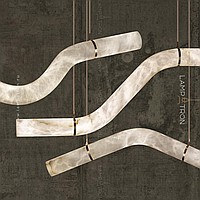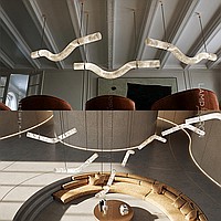 A series of suspended LED lamps with a broken tubular ceiling made of natural Spanish marble