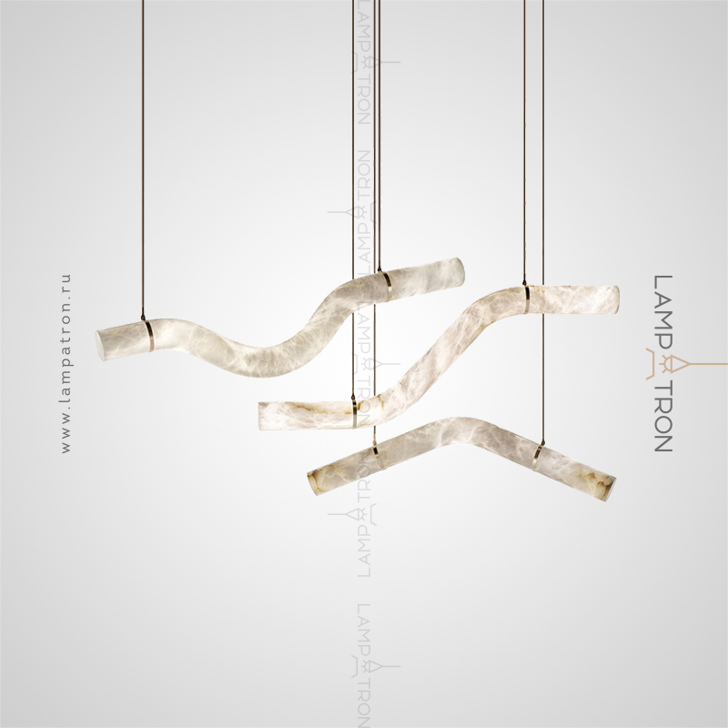 A series of suspended LED lamps with a broken tubular ceiling made of natural Spanish marble