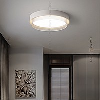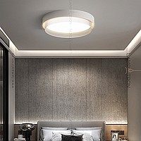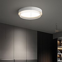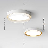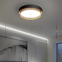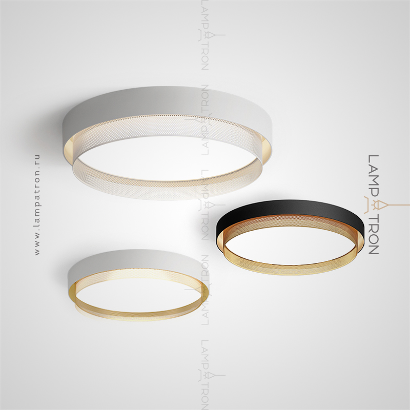 A series of ceiling LED lamps with a round matte plaphipon in a double case made of metal and mesh
