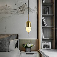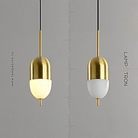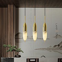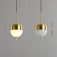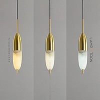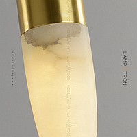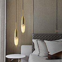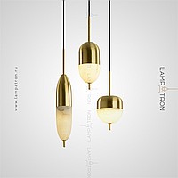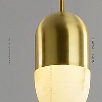 A series of suspended LED lamps with rounded plafins made of natural white marble