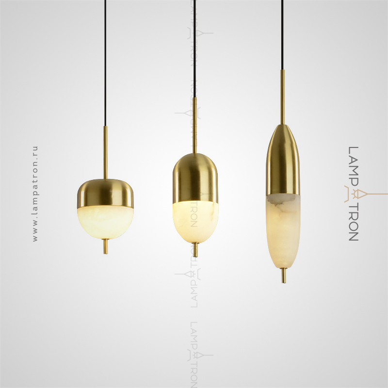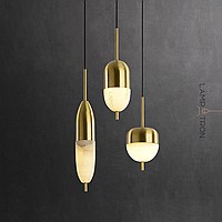 Ready -made combination of suspended LED lamps with three rounded plafones made of natural white marble