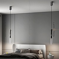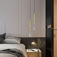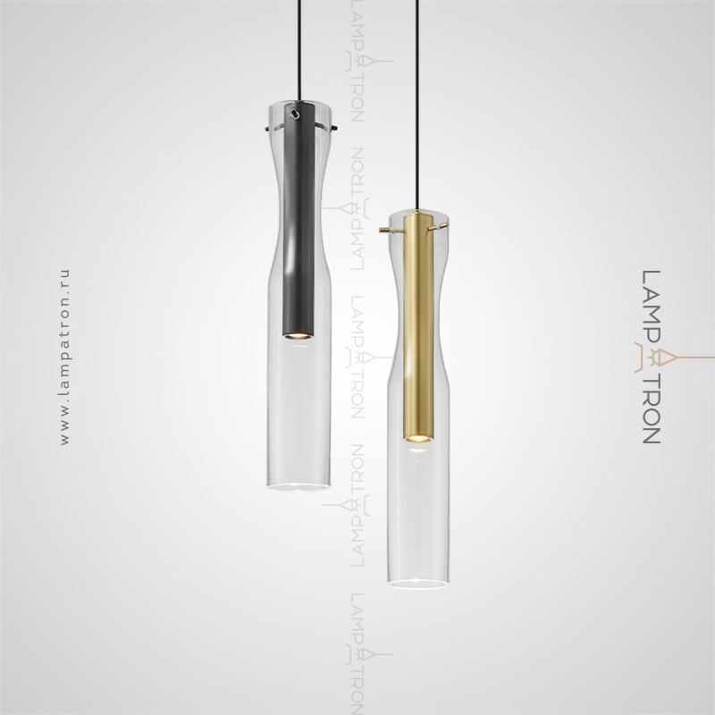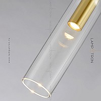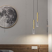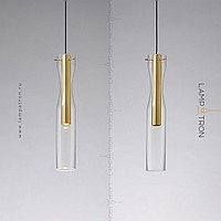 Suspended LED lamp with a brass cylindrical ceiling in a glass case in the shape of a sand clock