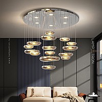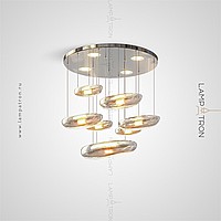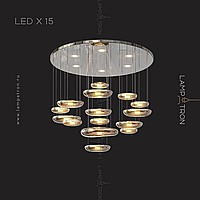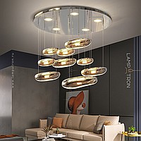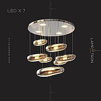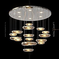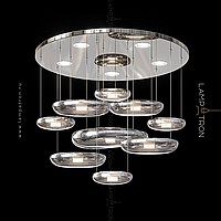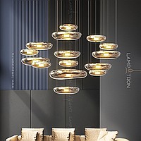 A series of suspended LED lamps with elongated rounded glasses of blowing glass