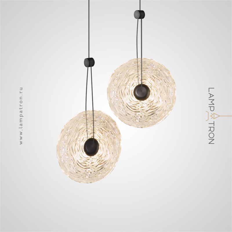 Pendant LED luminaire with disc-shaped diffuser made of handmade embossed glass