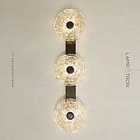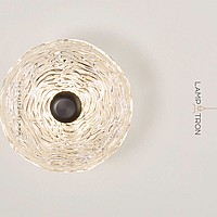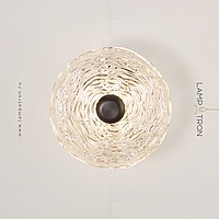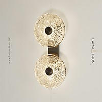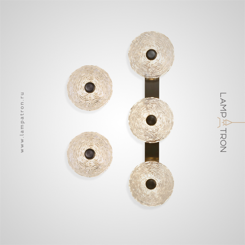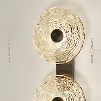 A series of LED wall lamps with disc-shaped diffusers made of handmade embossed glass