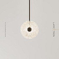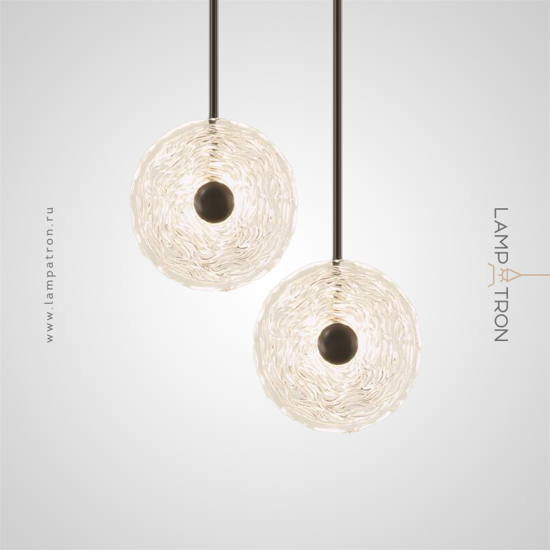 LED luminaire on a vertical stand with a disc-shaped diffuser made of handmade embossed glass