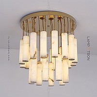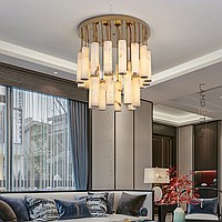 Finished combination of suspended lamps for 24 lamps with cylindrical marble