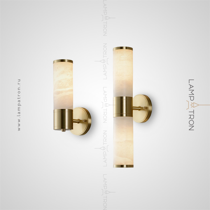 A series of wall lamps with a cylindrical marble