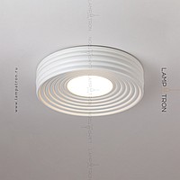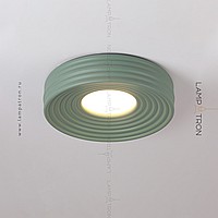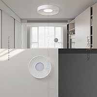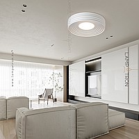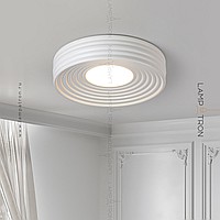 A series of ceiling LED lamps with a disk -shaped matte ceiling in a relief cylindrical case