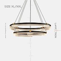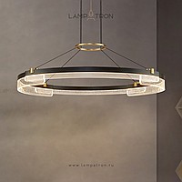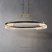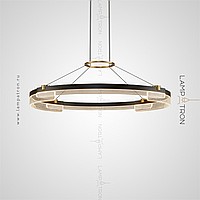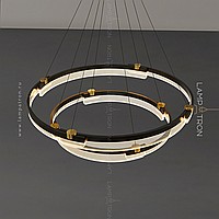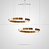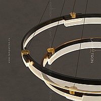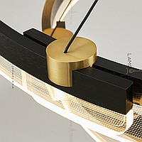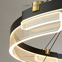 A series of annular LED chandeliers in the form of closed circular segments with transparent dialogue with engraving