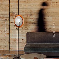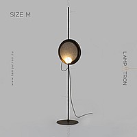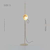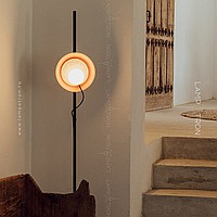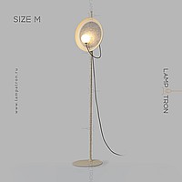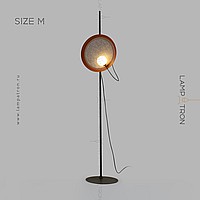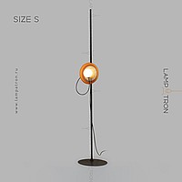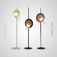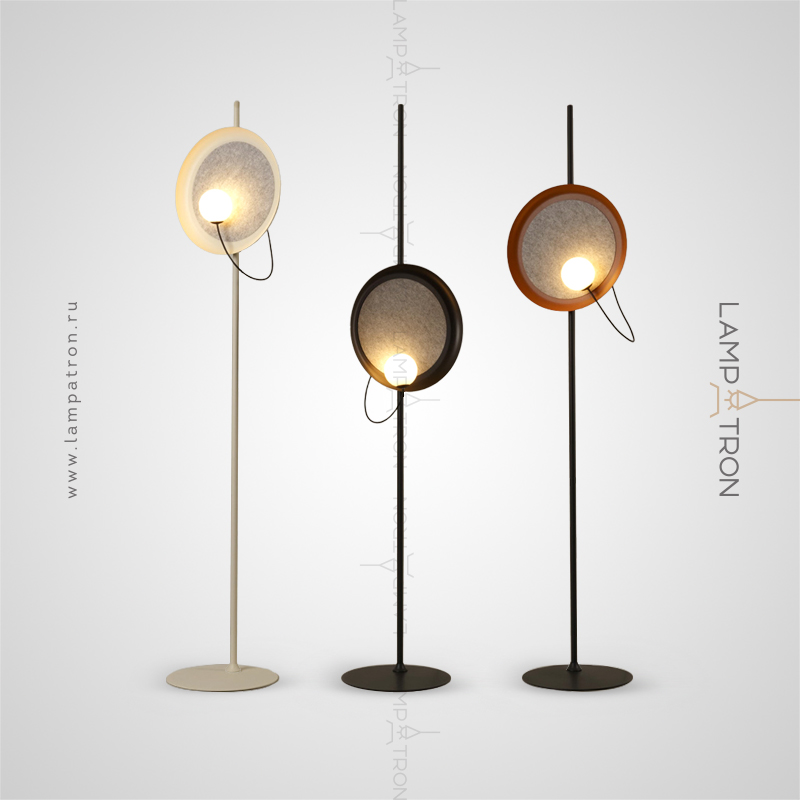A series of floor lamps with white spherical ceilings on a stable wire with a discoid lampshade