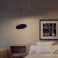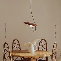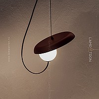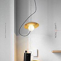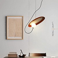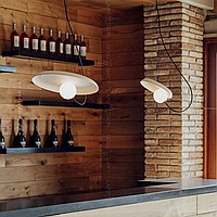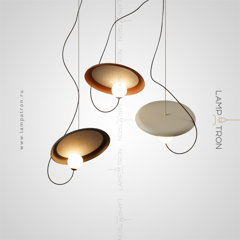 A series of suspended lamps with white spherical ceilings on a stable wire with a discoid lampshade