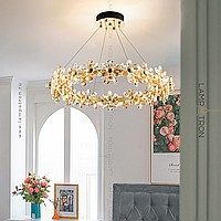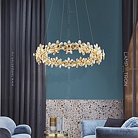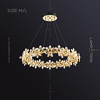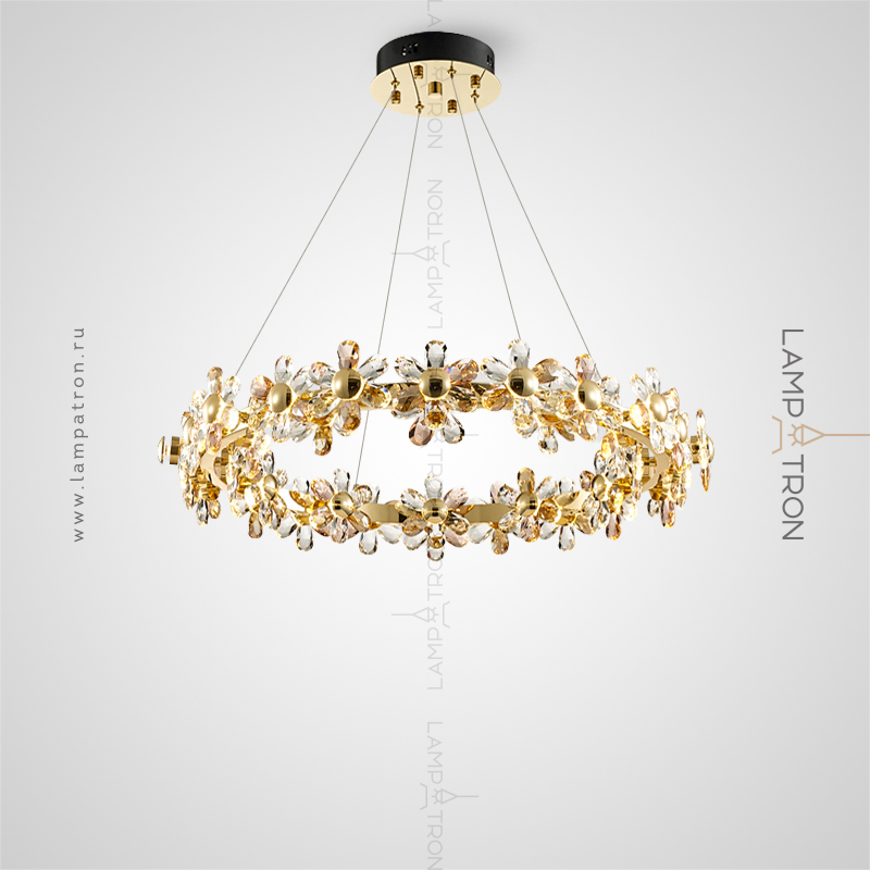 A series of annular LED chandeliers with crystal disperflowers in the form of flowers with a metal core