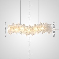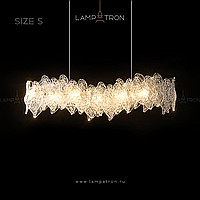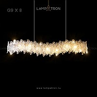A series of rack lamps with a lampshade of relief glass plates of irregular shape on a curved rail