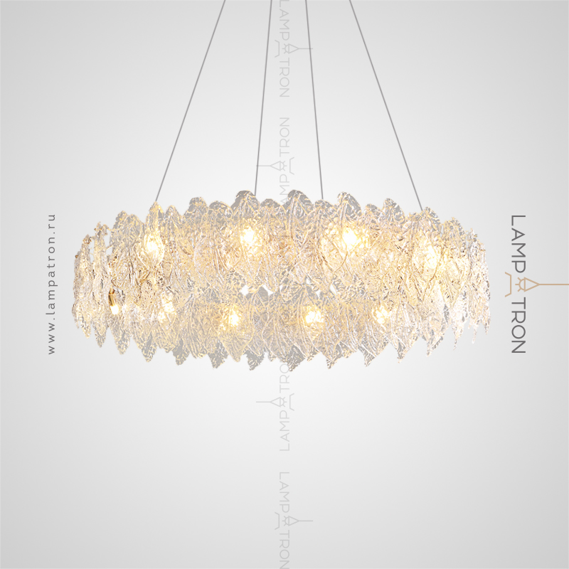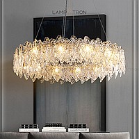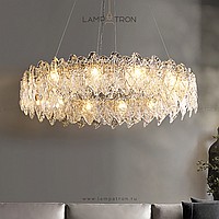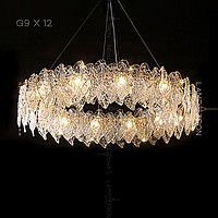 A series of ring chandeliers with a lampshade of relief glass plates of irregular shape