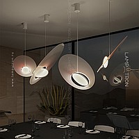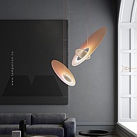 Designer suspension lamp in the form of a composition of two intersecting elliptical scattering