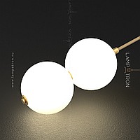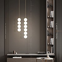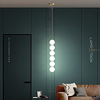 A series of designer lamps with glass spherical ceiling on a vertical rack