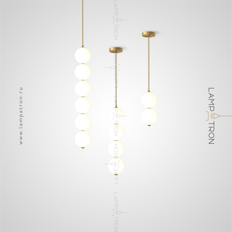 A series of designer lamps with glass spherical ceiling on a vertical rack