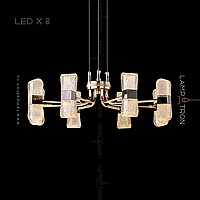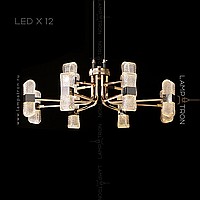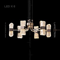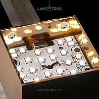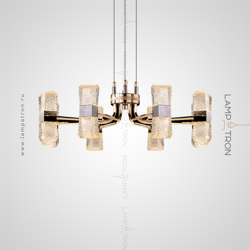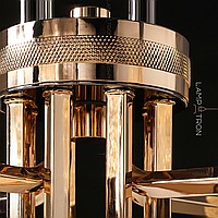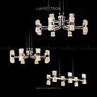 A series of LED chandeliers on a radial frame with embossed plafones in the form of ingots