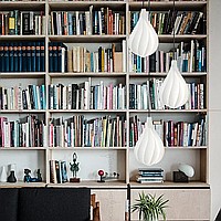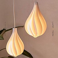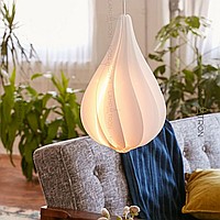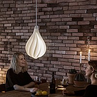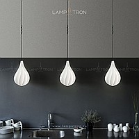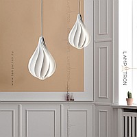 Suspended lamp with a white relief ceiling of a drop -shaped shape