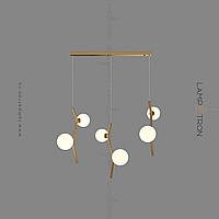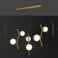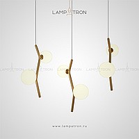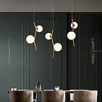 A finished combination of lamps with spherical glass ceilings of different diameters on curved drains