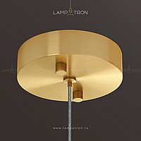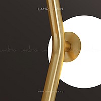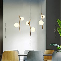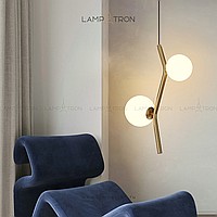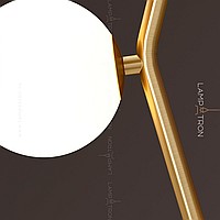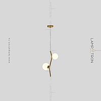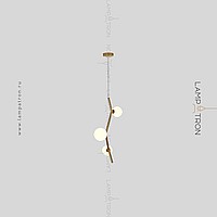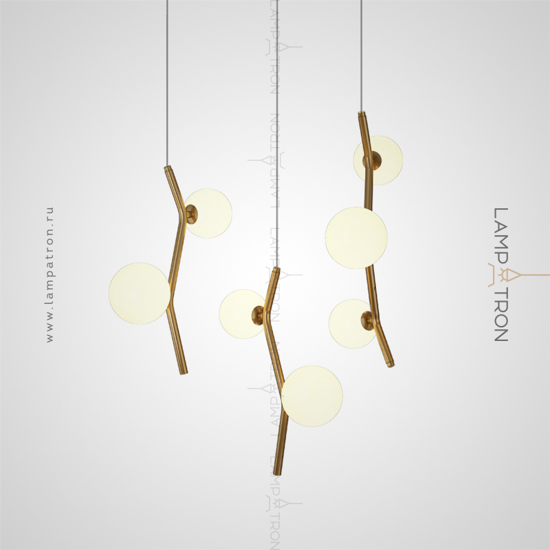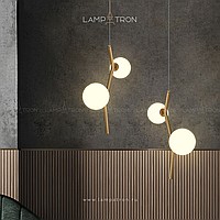 Suspended lamp with spherical glass plafins of different diameters on curved drain