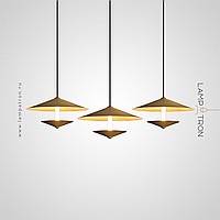 Pendant LED luminaire with cylindrical source in two conical diffusers