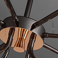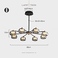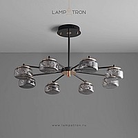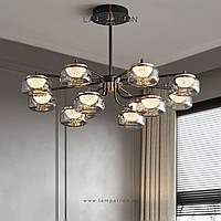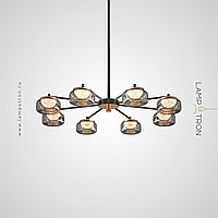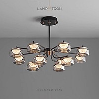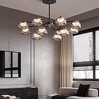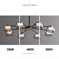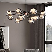 A series of chandeliers with LED light sources in hemispherical diffusers with an ice effect inside glass shades