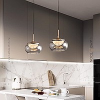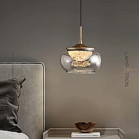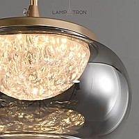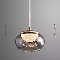 Pendant luminaire with LED light source in hemispherical diffuser with ice effect inside tinted glass shade