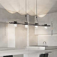 A series of rack-and-pinion LED luminaires with point lensed sources in rotary diffusers