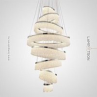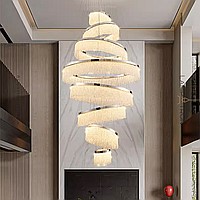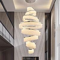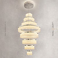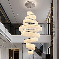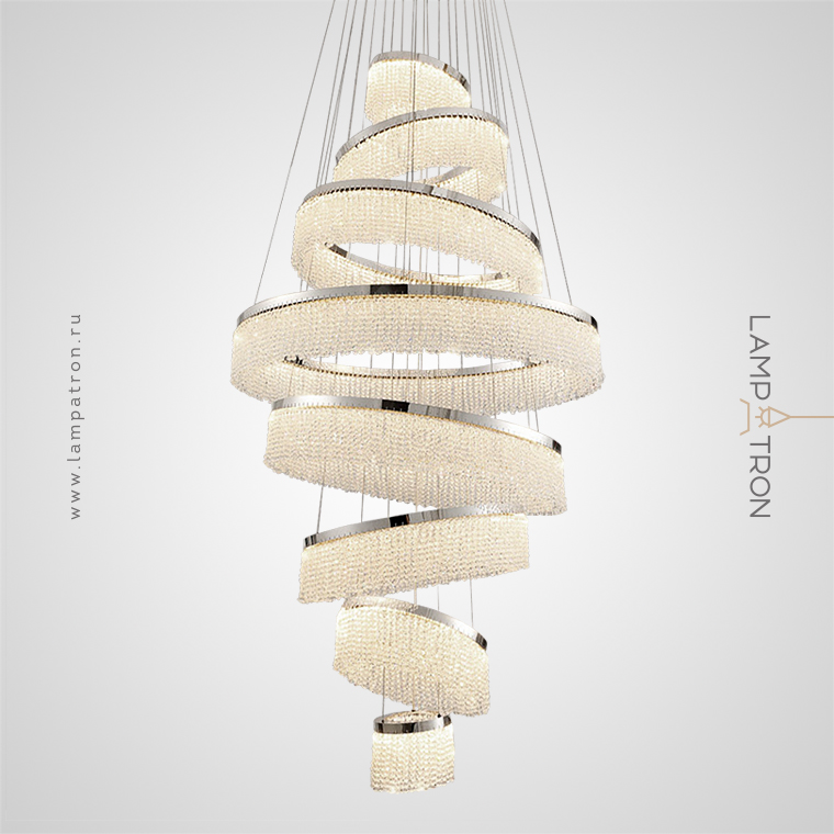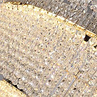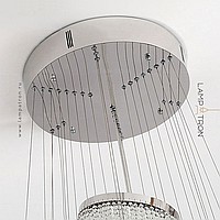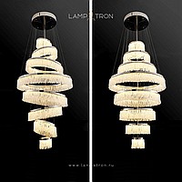 Cascading chandelier made of LED rings of different diameters with crystal bead décor
