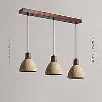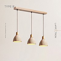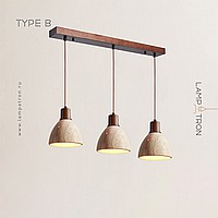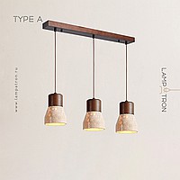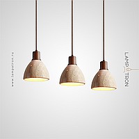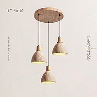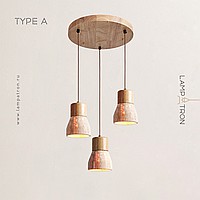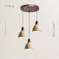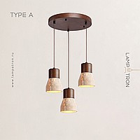 Ready-made combination of pendant lamps with geometric shades made of travertine stone with wood trim