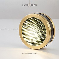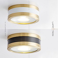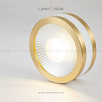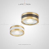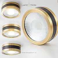A series of spotlights of a cylindrical shape with a brass tint edging